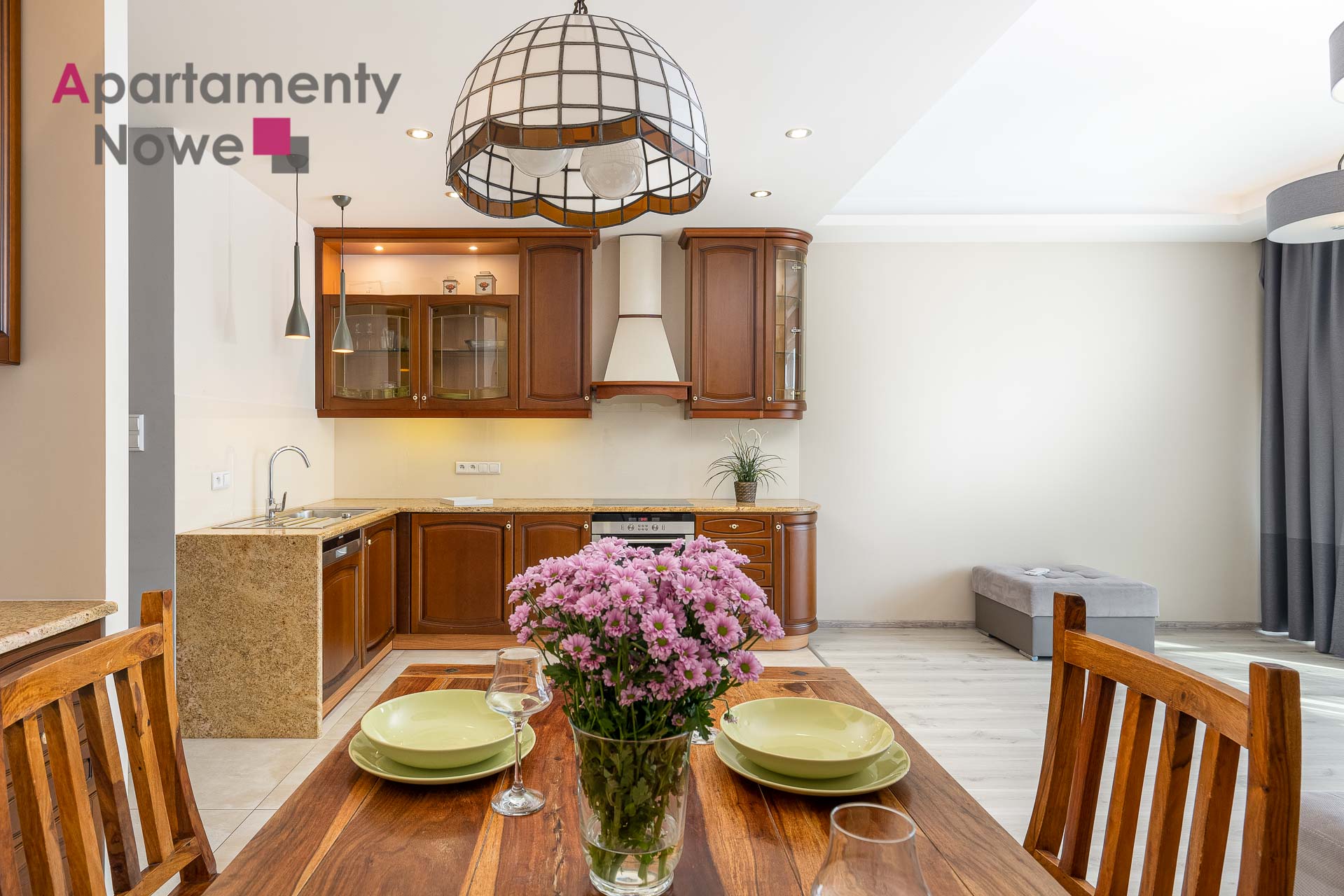 Mieszkanie ma powierzchnie 44 m2, na które składa się: stylowy, przestronny salon połączony z aneksem kuchennym wyposażony w wysokiej jakości sprzęt AGD, łazienka z prysznicem, przedpokój, duży taras. Mieszkanie jest wyposażone w klimatyzację.