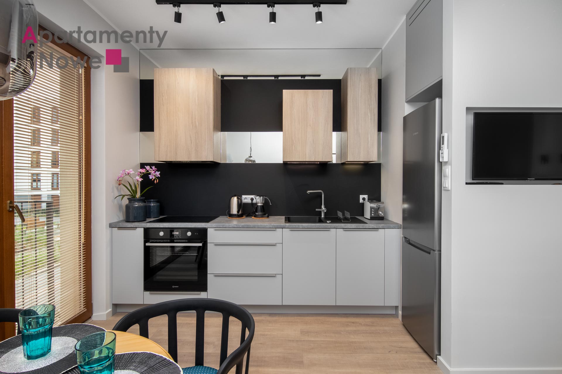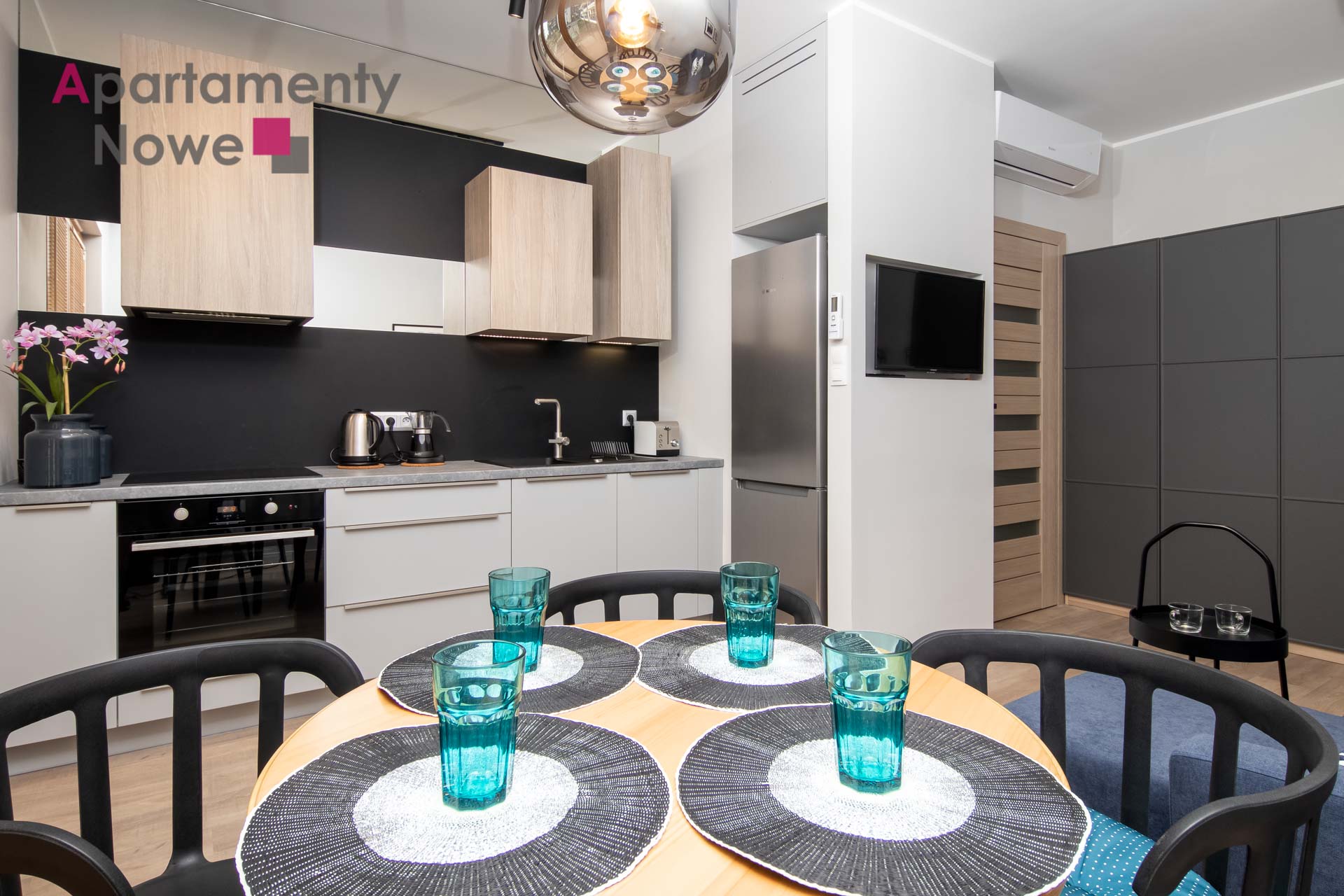 Mieszkanie ma powierzchnie 35 m2, na które składa się: elegancki salon połączony z funkcjonalnym aneksem kuchennym, wyposażony w wysokiej jakości sprzęt AGD oraz wszystkie potrzebne rzeczy użytku codziennego, sypialnia, łazienka z prysznicem, przedpokój, balkon. Mieszkanie jest wyposażone w  TV, klimatyzację.