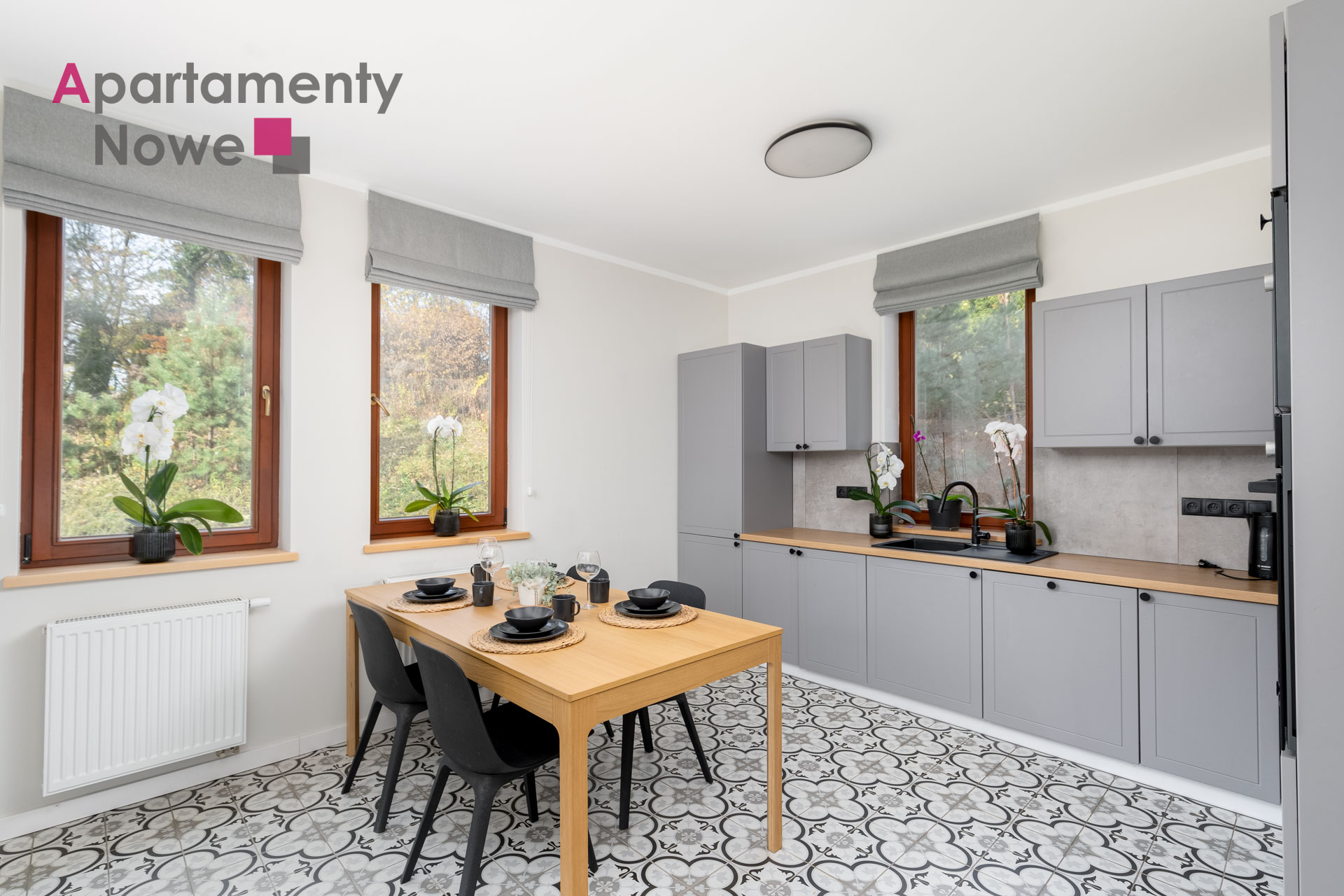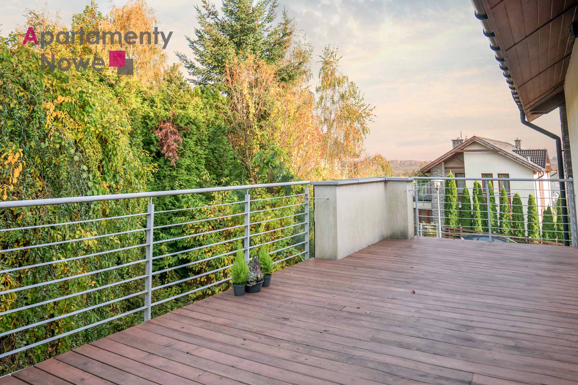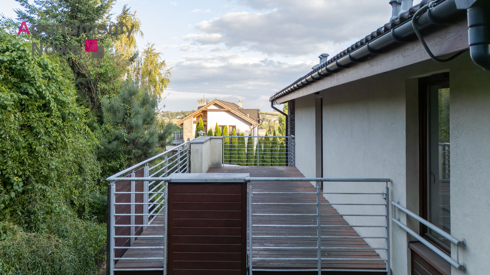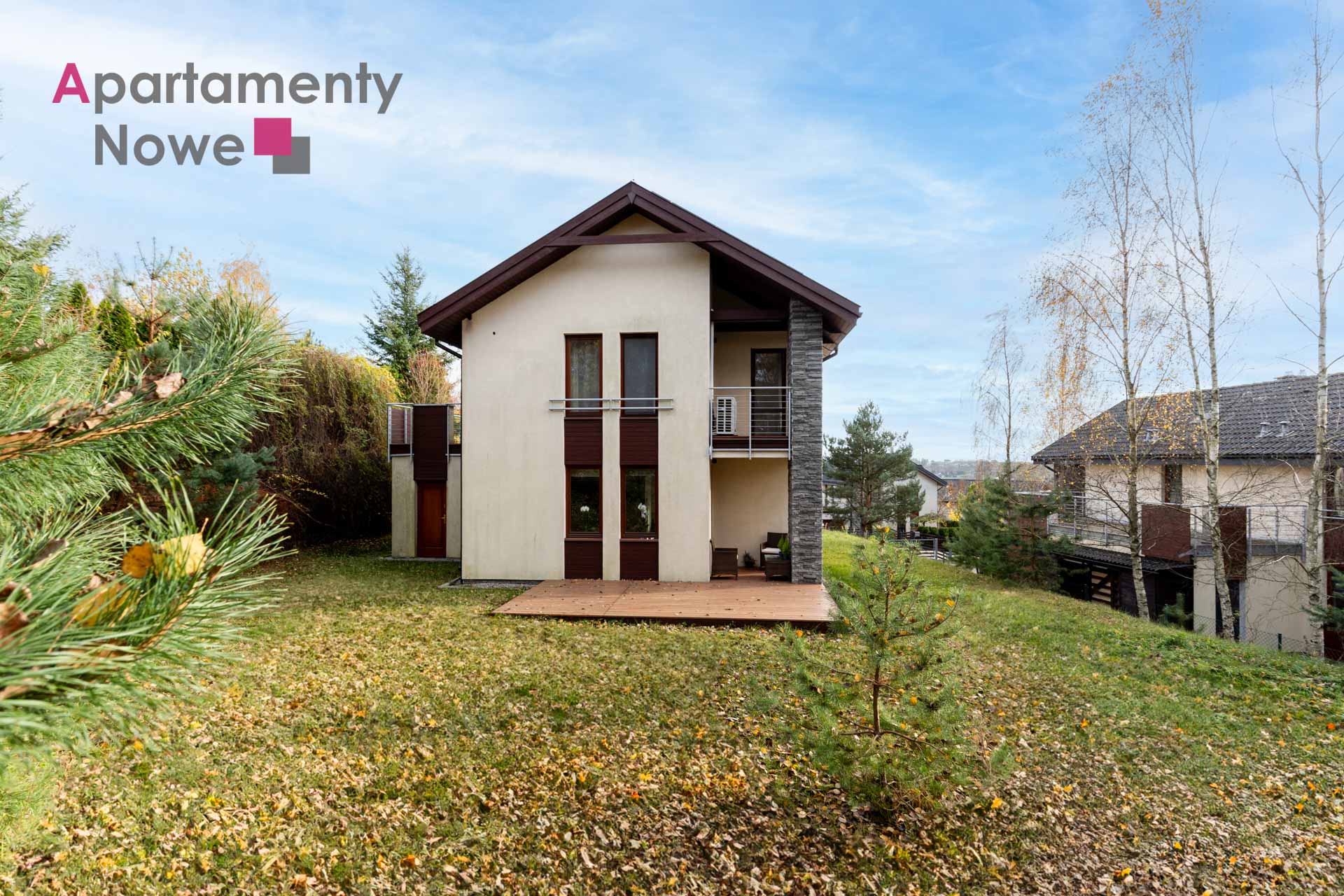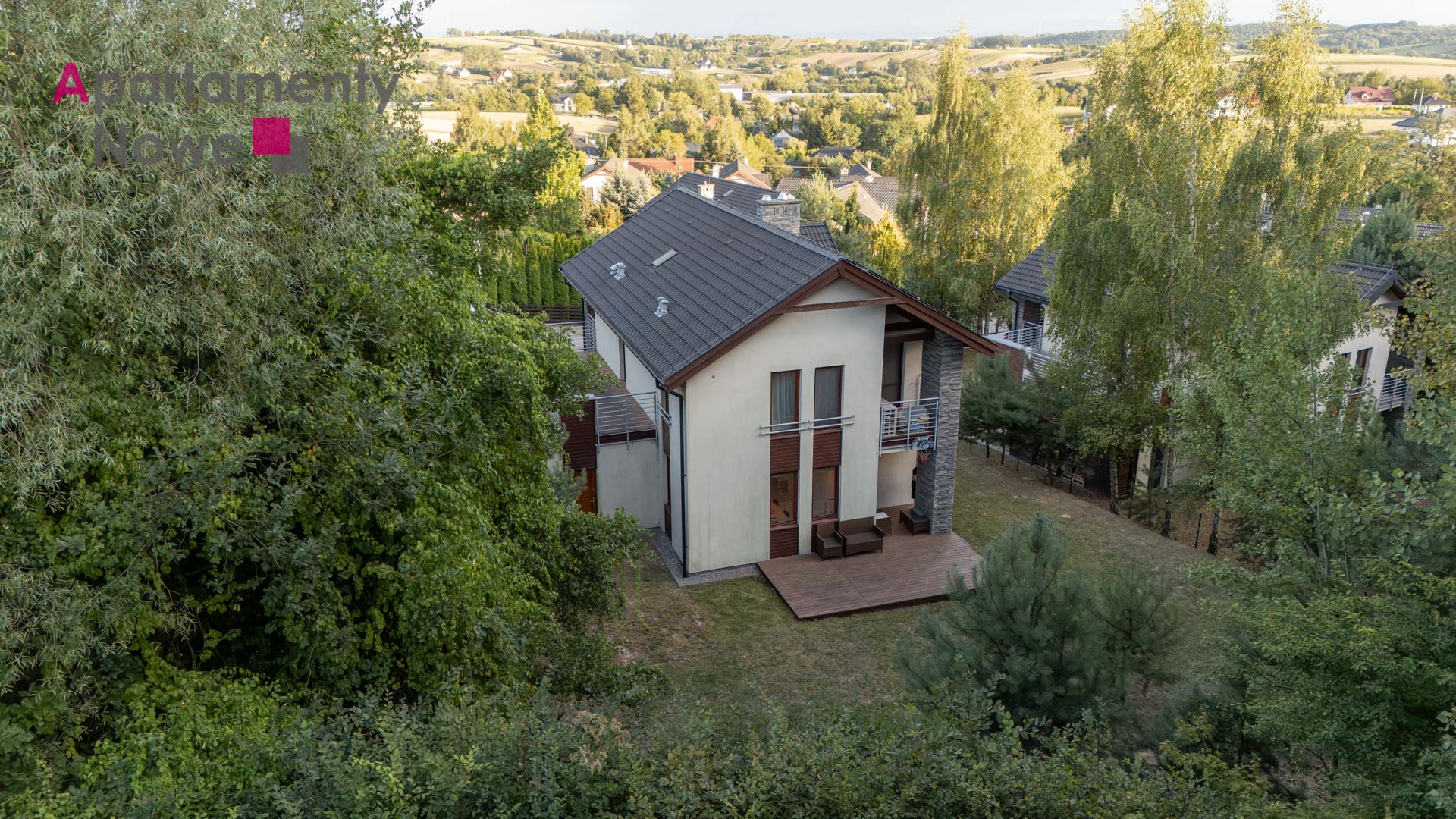 Komfortowy, klimatyzowany dom wolnostojący zlokalizowany na prestiżowym osiedlu domów jednorodzinnych „Saritor Park” w Masłomiącej gm Michałowice – tylko 13,5 km i 22 minuty do Galerii Krakowskiej. Dom znajduje się na działce o powierzchni 927 m2, chodnik oraz podjazd wykonany z kostki brukowej.