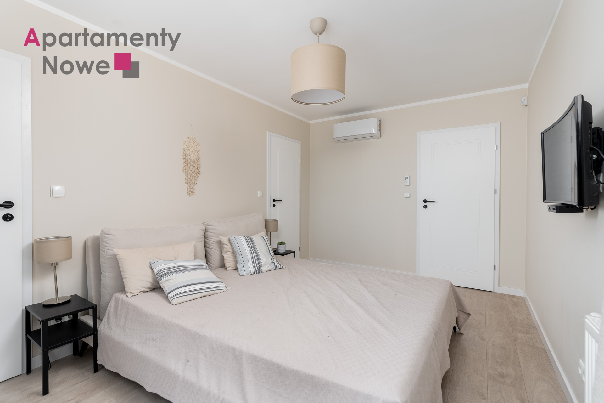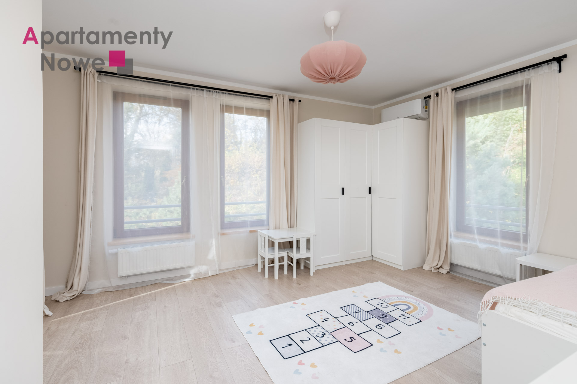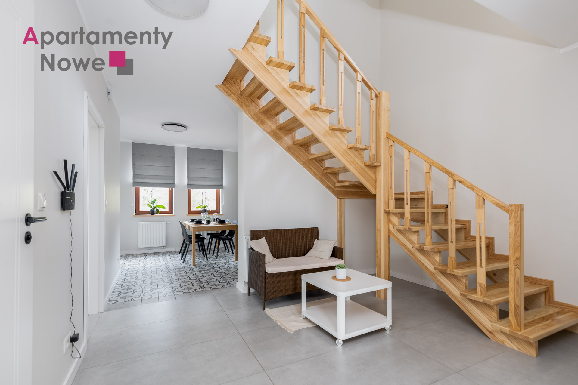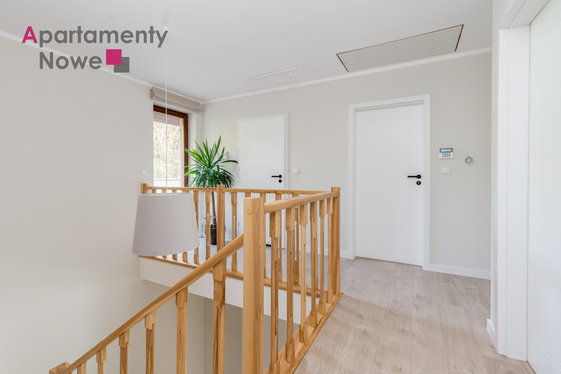 Trzy osobne sypialnie z wyjściem na balkon, łazienka z wanną oraz prysznicem, hall. W głównej sypialni znajduję się przestronna garderoba, dodatkowa własna łazienka oraz wyjście na przestronny taras. Strych to dodatkowa przestrzeń pełniąca funkcję schowka.