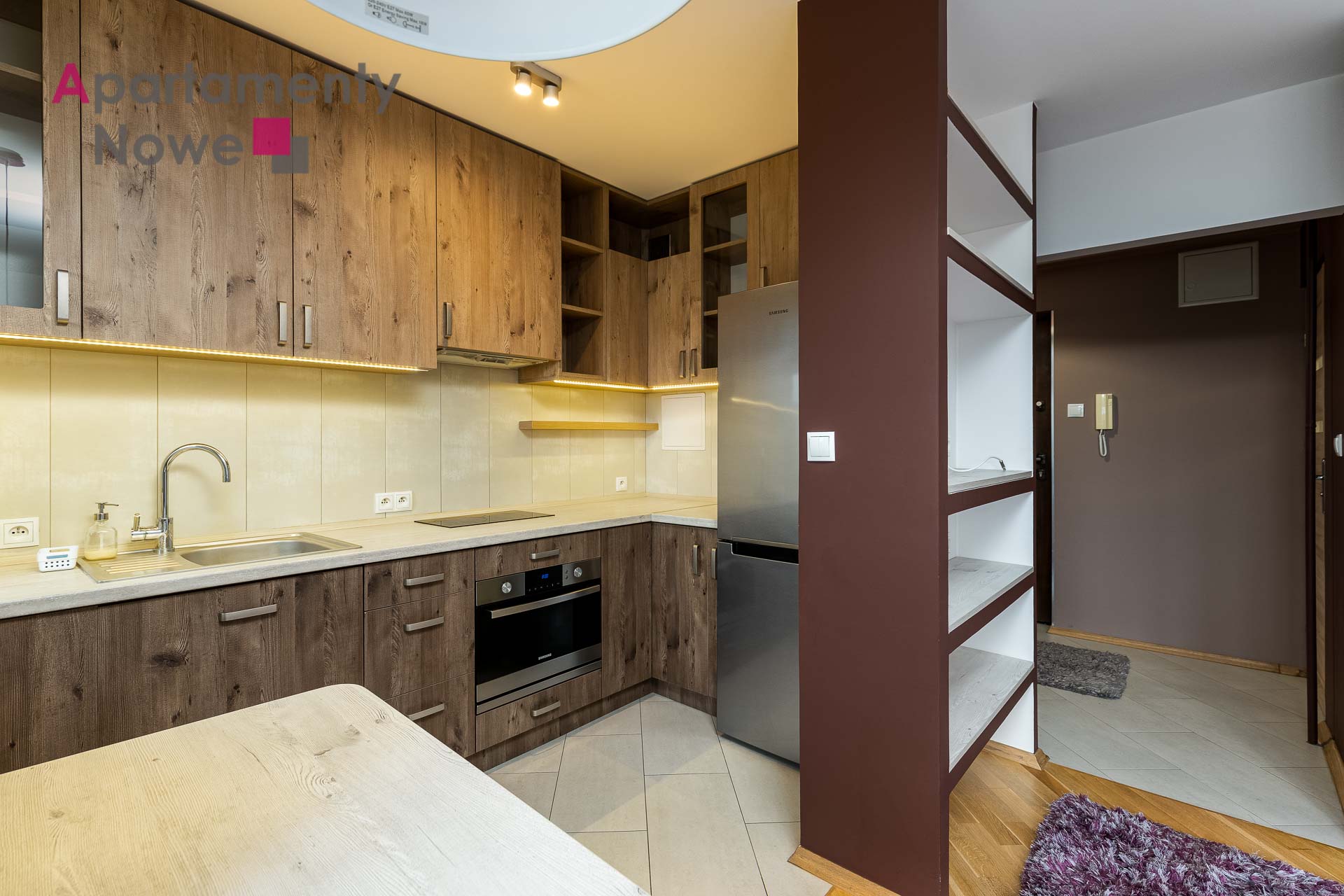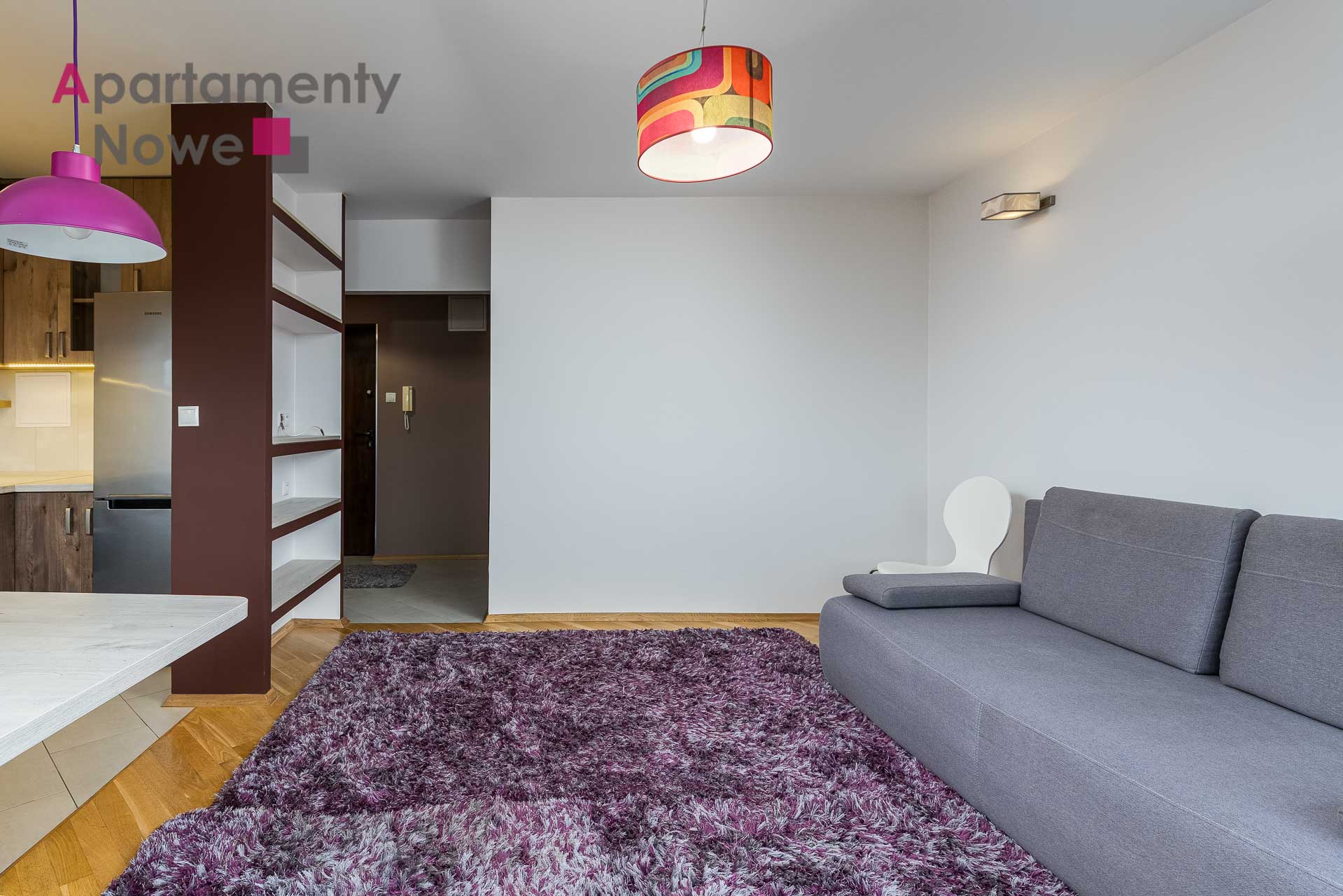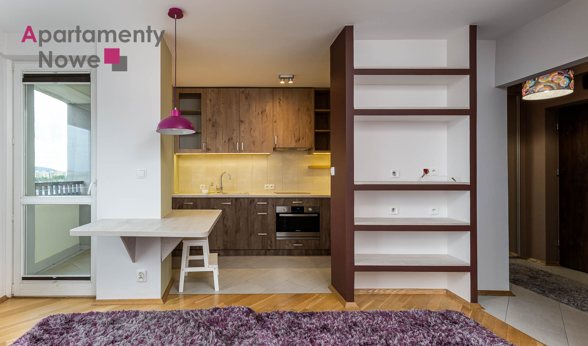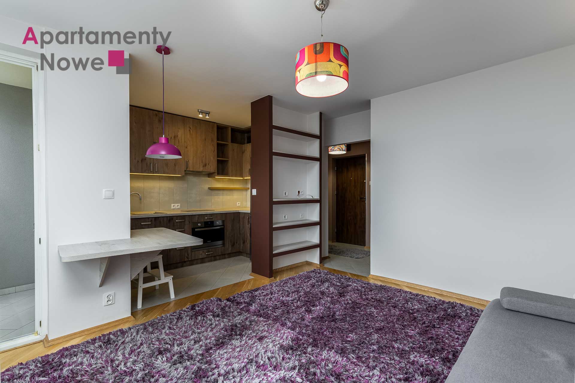 The apartment is located on the 8th floor of a modern and cozy building, it has an area of 30 sqm. The apartment consists of living room with kitchen, a bathroom with bathtub and toilet, hallway and loggia with a beautiful view of Krakow. The apartment is completely furnished and equipped with all necessary appliances.
