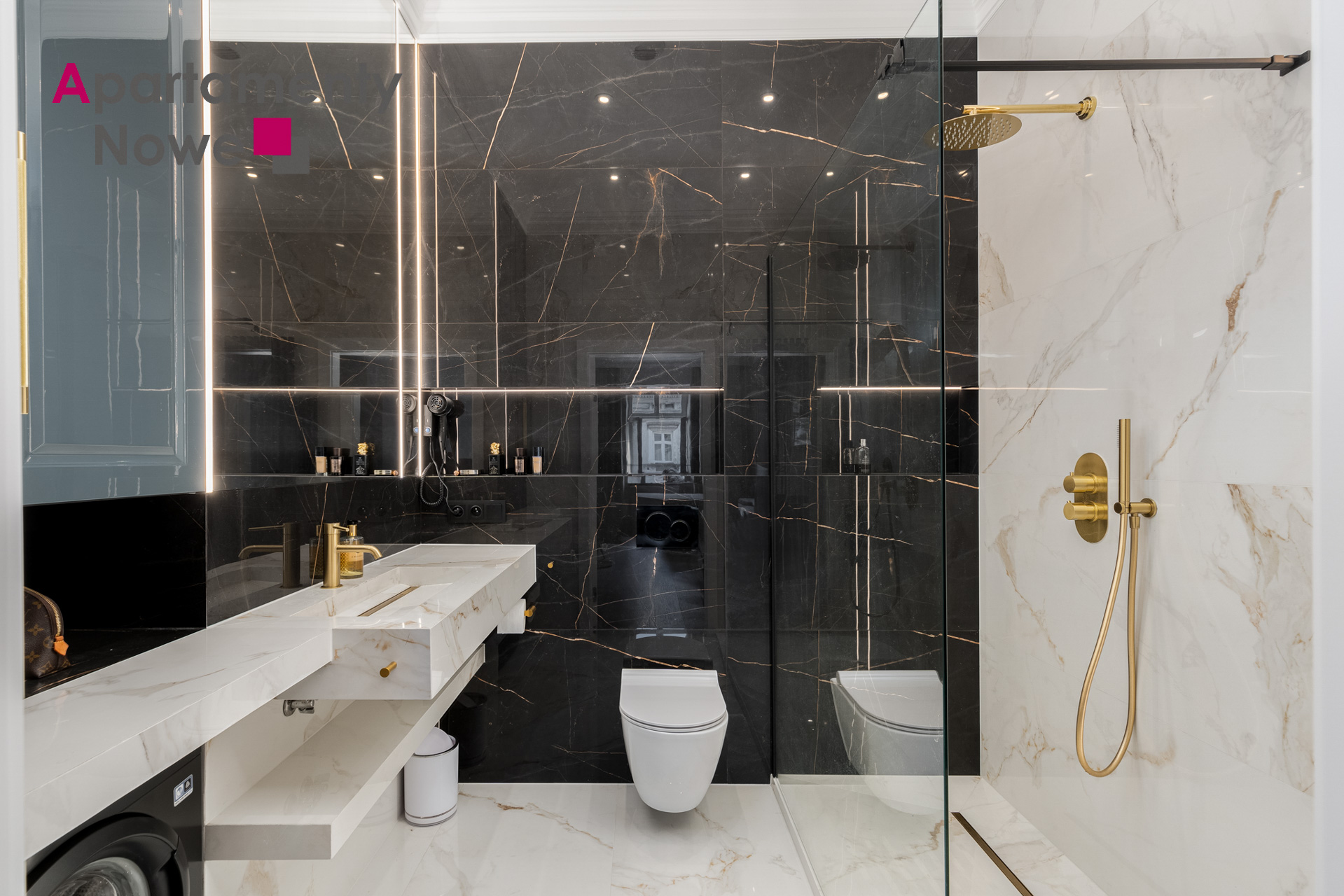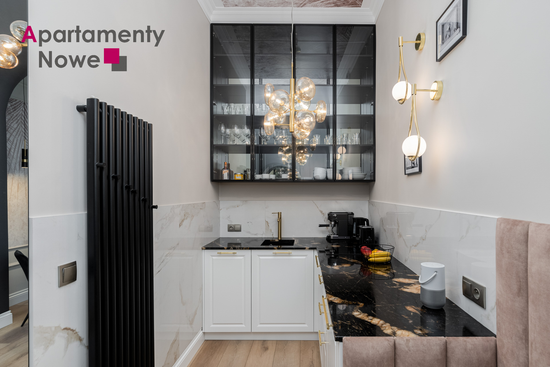 The apartment is located on the first floor of beautiful tenement house from the 19th century, completely renovated. Both the facade and common parts regained their former splendor and freshness. The building has four residential floors and is equipped with an elevator.