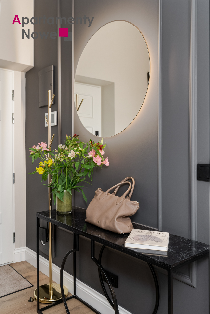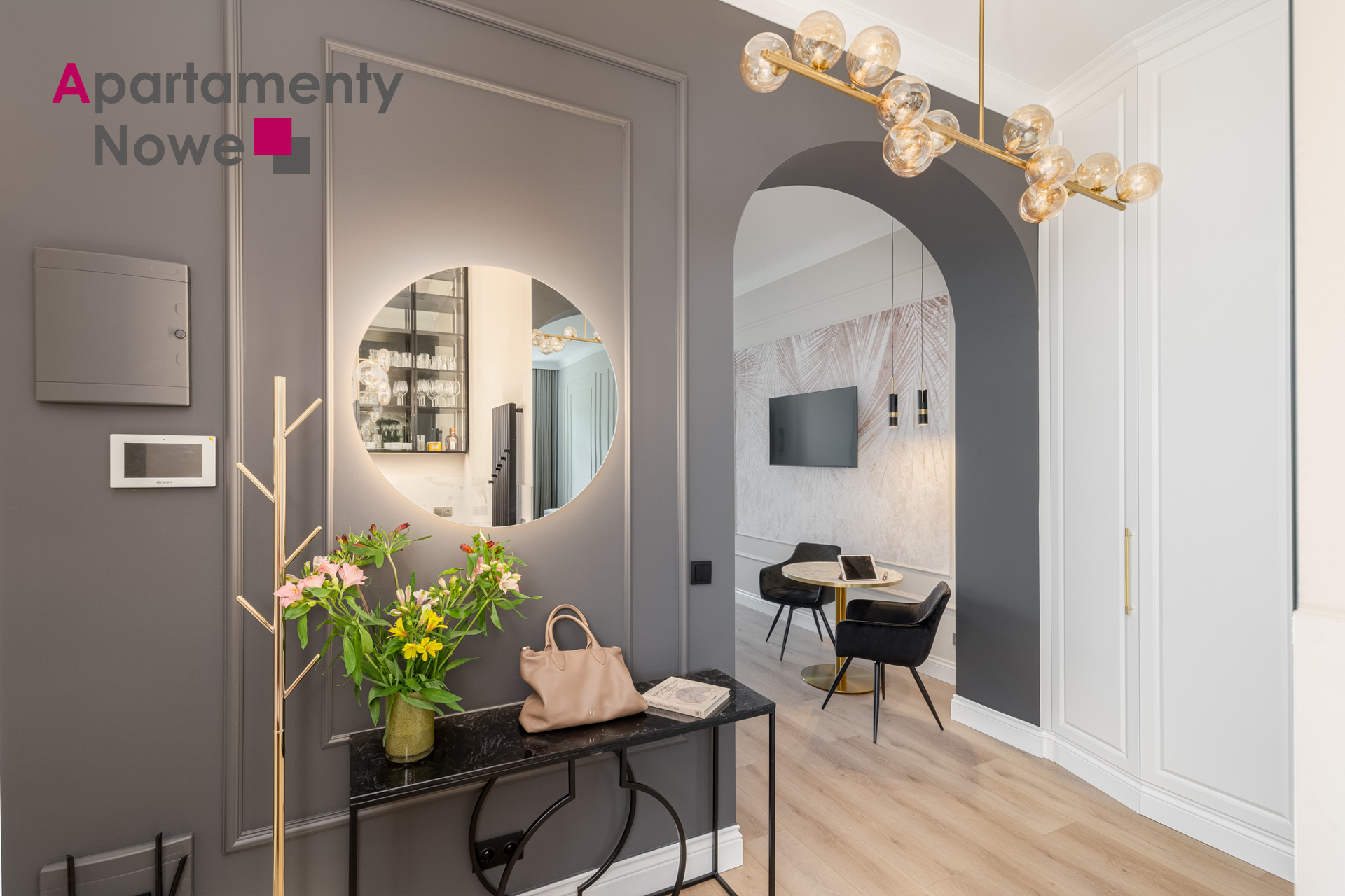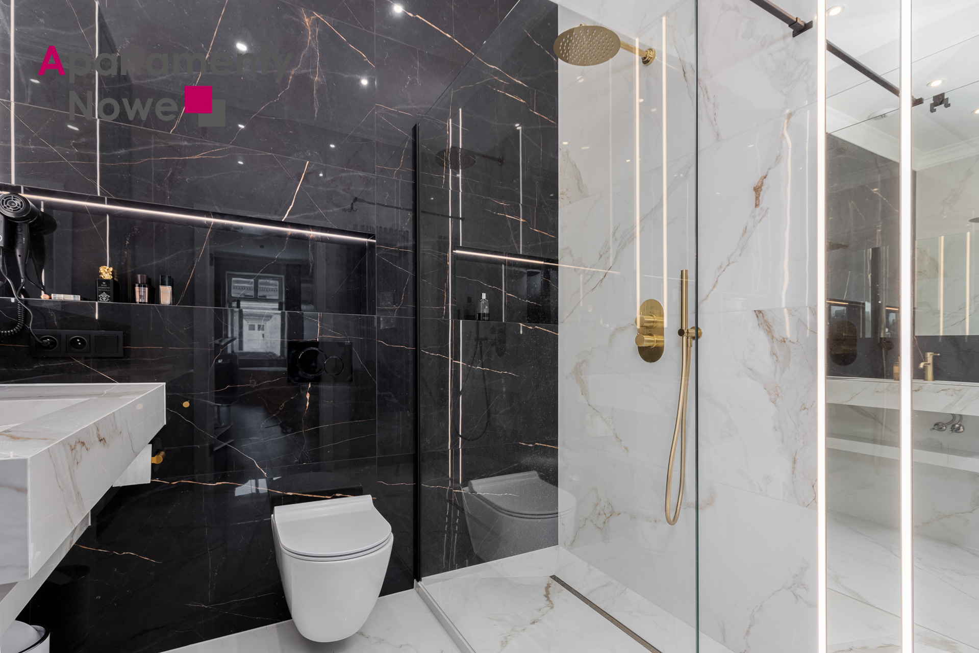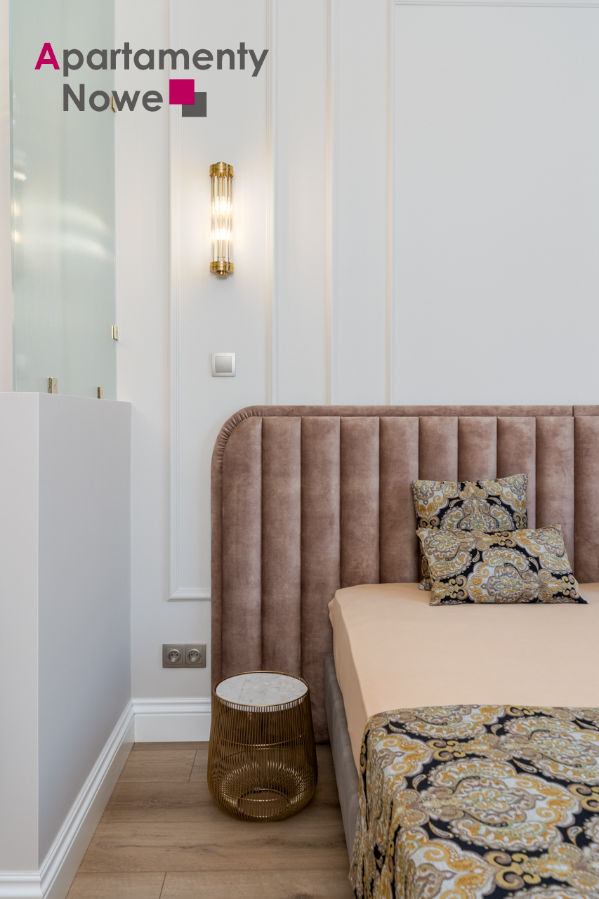 The apartment has an area of 38 sqm, which consists of: elegant, bright living room with the sleeping area, which has a comfortable double bed, a wardrobe, is optically separated from the relaxation area by partial construction, separate kitchen, equipped with high quality appliances, necessary  for everyday use stylish bathroom with the shower and a spacious hall. The apartment is equipped with air conditioning. The interior impresses with its above-standard room height, which, combined with large windows, gives it exceptional class and elegance.