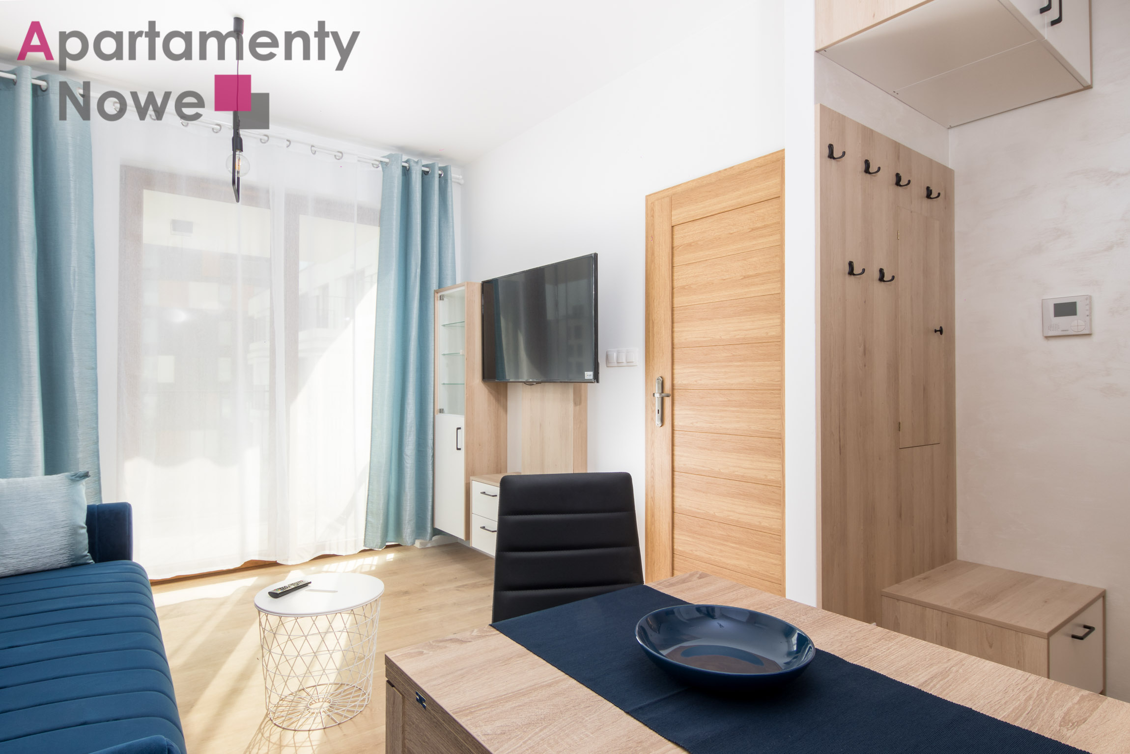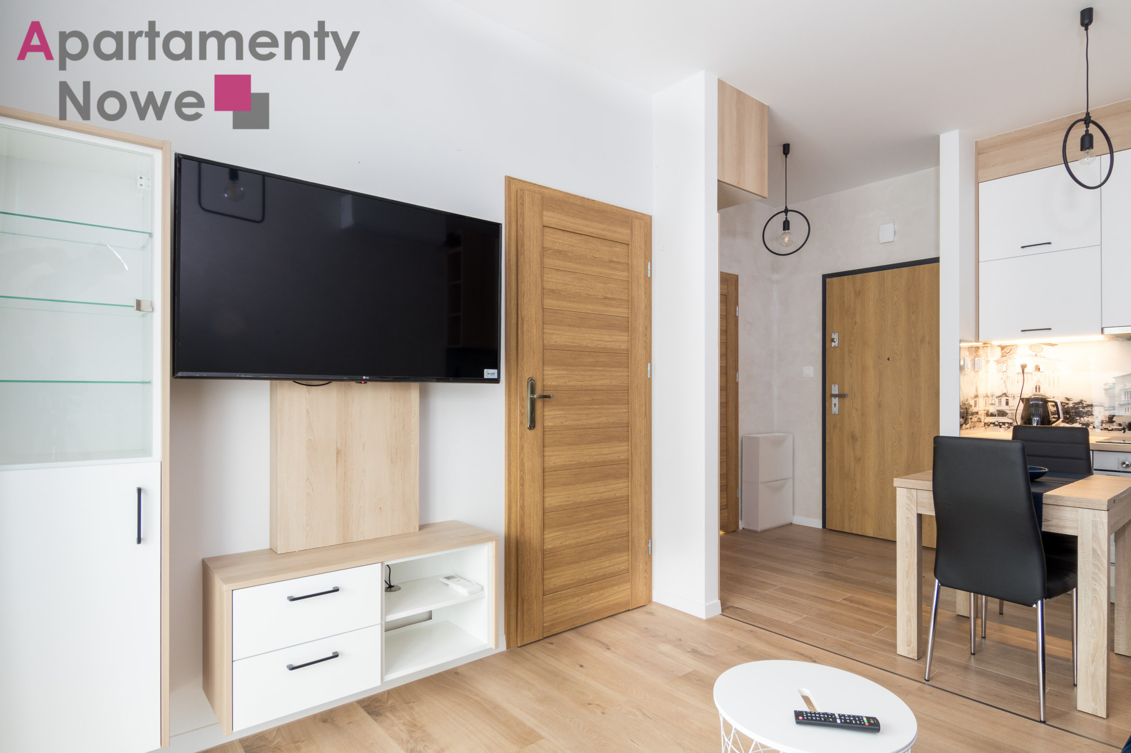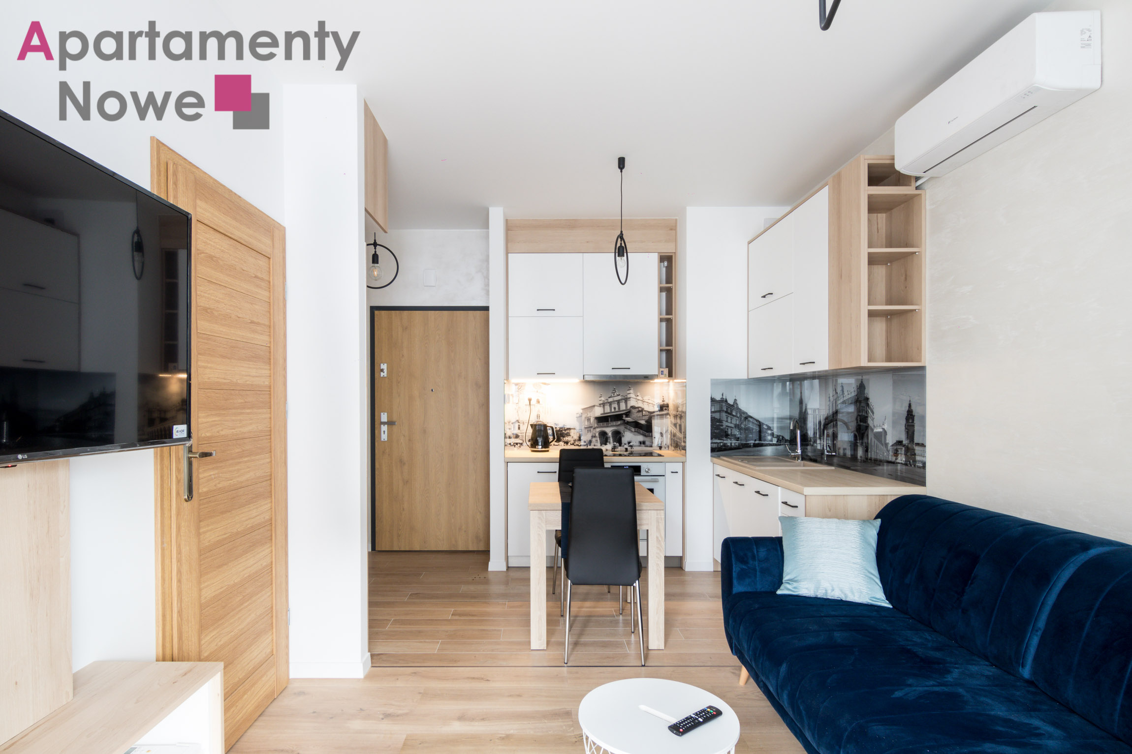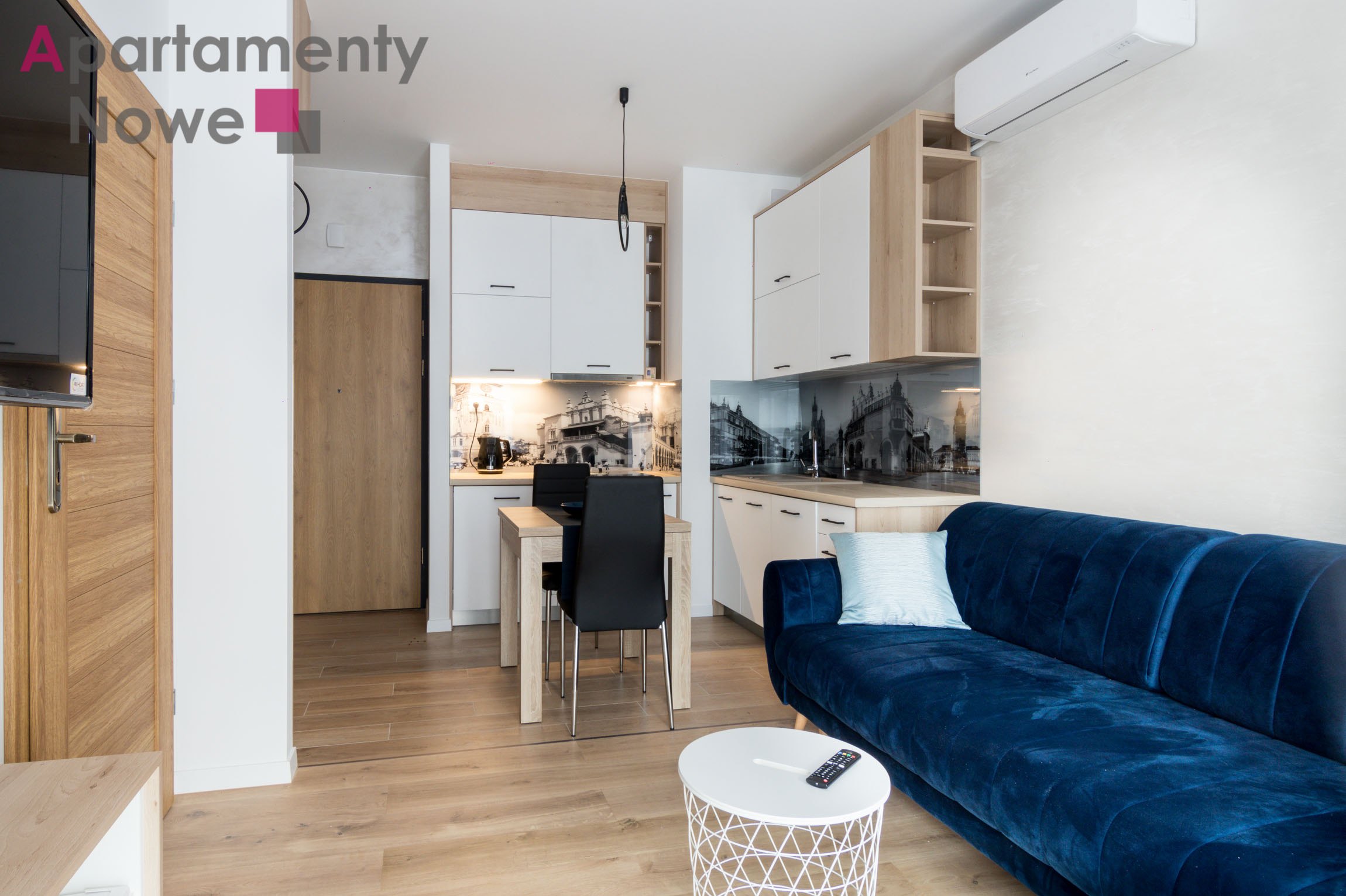 For rent cozy one-bedroom apartment in a new prestigious development “Apartamenty Go!” on Rakowicka 22 J St. The apartment is located on the 3 floor of a modern and cozy building from 2018. The apartment has an area of 30 sqm, which consists of: sunny living room with functional kitchen, bedroom, bathroom with shower, hall and balcony. The apartment is finished in a high standard, equipped with all necessary everyday necessities. The apartment is equipped with air conditioning. Possibility to rent a garage for an additional fee.
